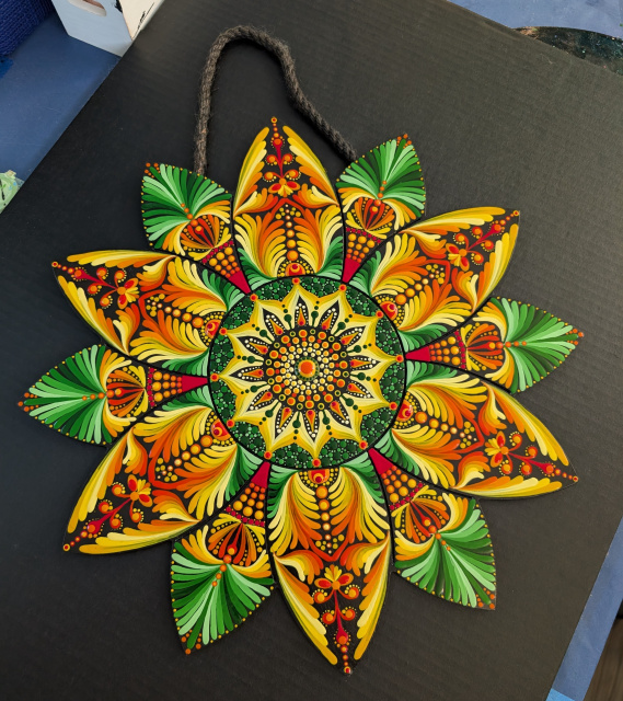 Mandala Dot Paintings for Sale > Sunflower in Green, Yellow and Orange