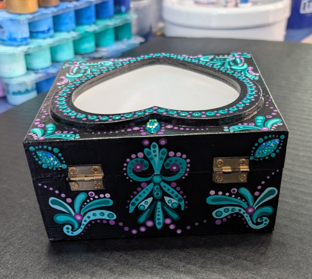 Handpainted Trinket Boxes > Teal Purple Heart Trinket Box